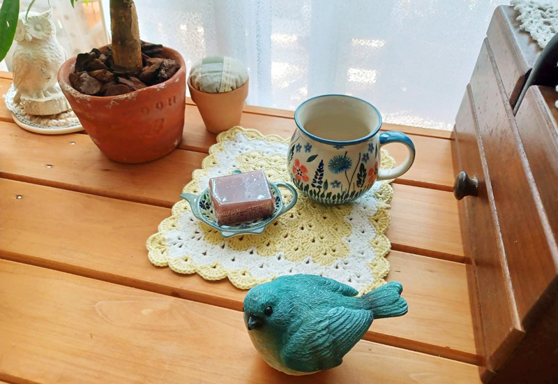 お茶の時間をグレードアップ ティーマット(レースフラワー) 綿100%の糸で編んだ、カギ編みのティーマットです。色とりどりで、ナチュラルな中にも可愛らしさがあります。四つ折にしてハンカチとしてお使いになってもいいですし、お茶の際に下に敷いてもとても可愛いと思います。お色は4色で、ターコイズ・グリーン・イエロー・ピンクです。落ち着いた色味ですので、使う人を選ばず、ちょっとした贈り物などにもおすすめ致します。 1枚 1,800円 サイズ:約20㎝×20㎝ 編み小物